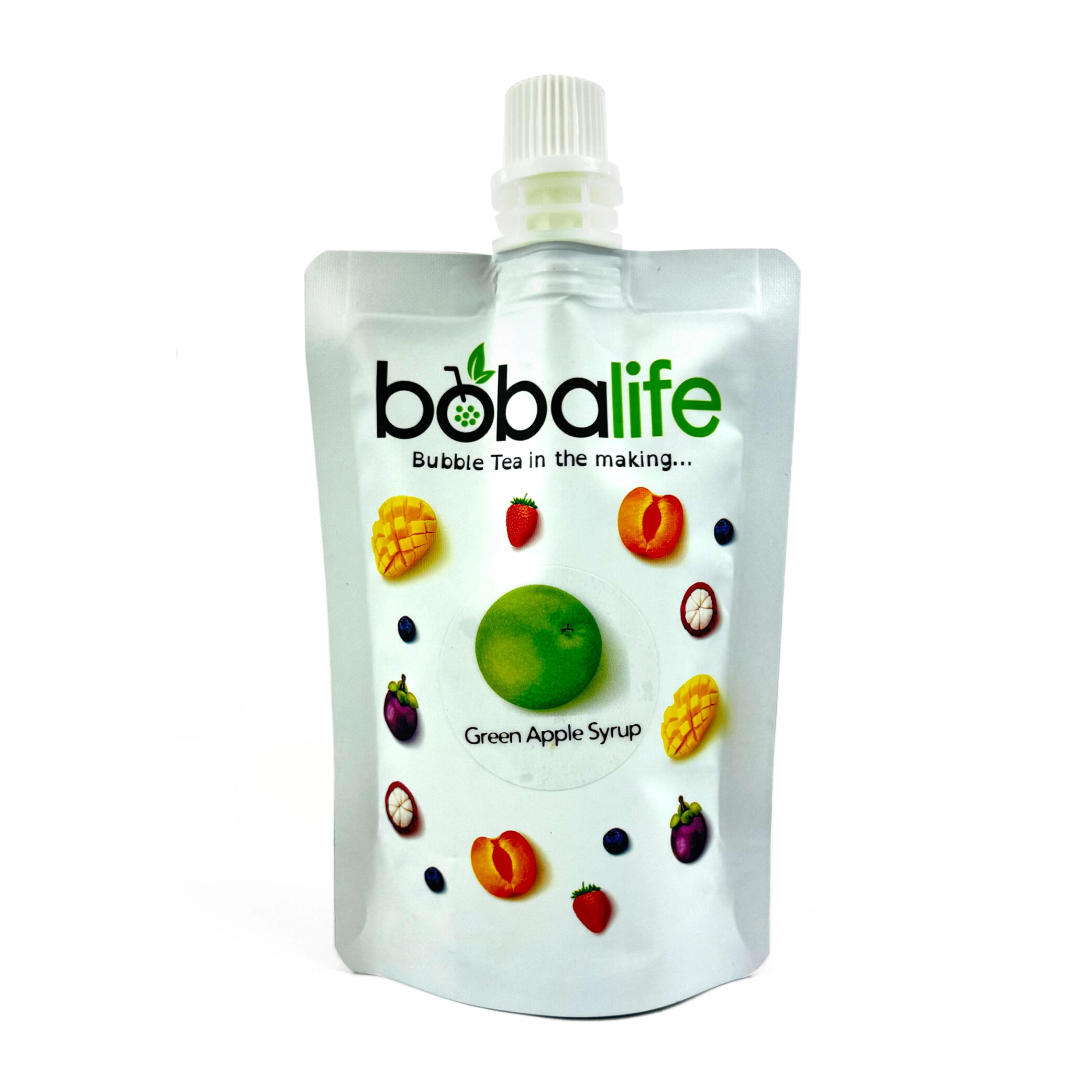 Boba Life premium Taiwanese green apple flavoured bubble tea syrup by Boba Life in small 150g packet. Use this green apple syrup mix to create a fruit bubble tea and add bursting bubbles or traditional chewy boba balls. Just mix the syrup with your choice of cold tea, add the boba, ice and serve with a jumbo straw. Can also be used to add colour and flavour to bubble tea milk drinks.