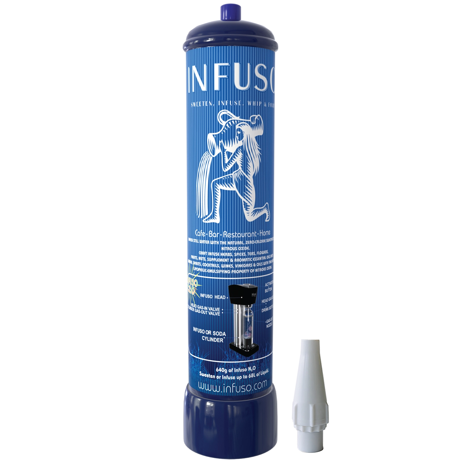 Single Infuso Whip cream charger for use with our regulator-adapter to connect directly to cream whippers or soda syphons. Infuso Whip cream chargers are compatible with the Roselle InfusoSoda for making infused cocktails.