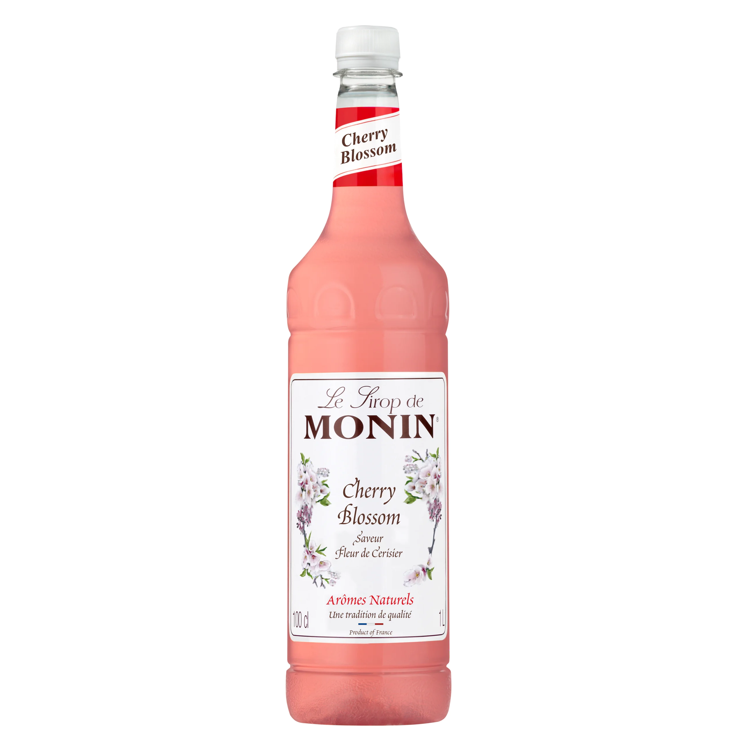 Monin Cherry Blossom syrup in 1 litre plastic bottle. Cherry Blossom is the symbol of traditional Japanese values - transitory beauty, purity and simplicity. You can experience the intensity of this new flavour as they do in Japan, where the Cherry Blossom is memorable due to the famous spring event O-Hanami, a friendly and traditional gathering under the cherry blossom trees to appreciate the sight of the flowers. Monin Cherry Blossom syrup has the perfect hint of Rose and Peach flavours taste that will add a floral touch to your drinks. It is the ultimate flavour to realize the most mouth-watering dessert drinks and extend you drink offer to the world of delicacies. Details: