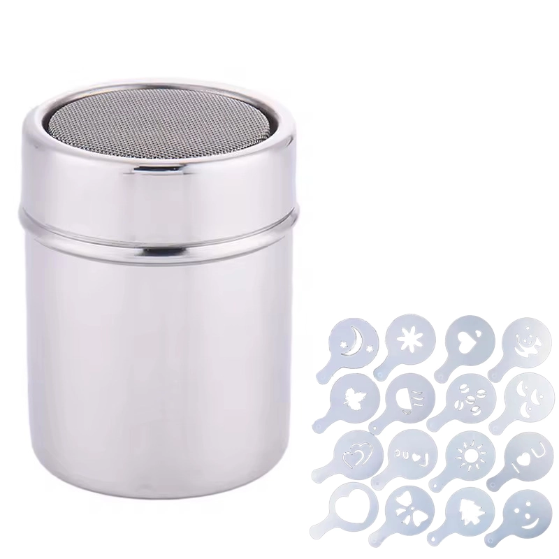 Chocolate Shaker With Fine Mesh and Stencils (Stainless Steel) - Small