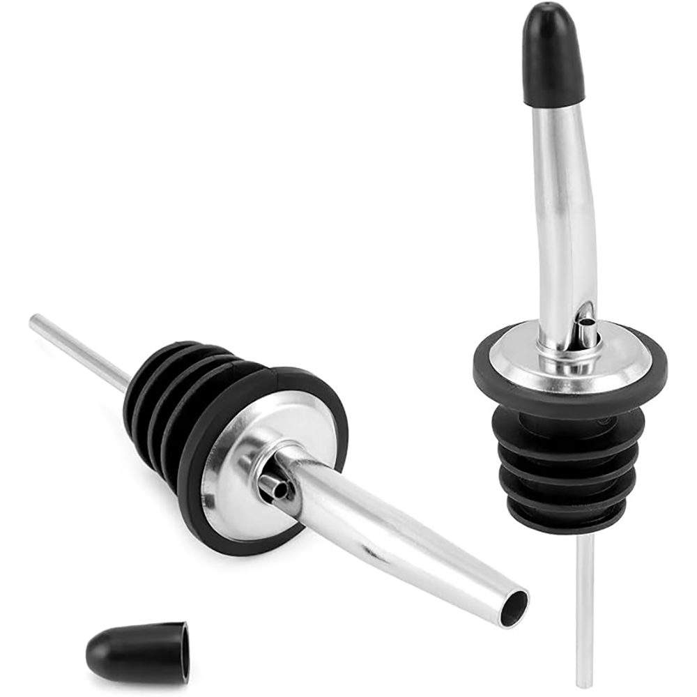 Stainless steel freeflow pourer with a black cap. The perfect way to add a vintage touch to your bottles of spirits, and are sure to give your bar a unique look. As well as adding a touch of the unique to any bar, these pourers are also the perfect way of reducing spills and mess. Fitting in nearly any liquor bottle, these freeflow pourers can also be used to help create layered drinks for ultimate style.